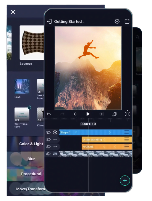 Create modern visual effects using hundreds of customizable building blocks for professional-quality animations.